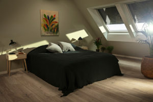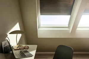 Per migliorare il comfort interno e avere buio e fino al 78% di caldo in meno negli ambienti, la finestra per tetti piani CVP INTEGRA può essere completata con una tenda oscurante o filtrante interna, abbinata a una tenda parasole esterna.